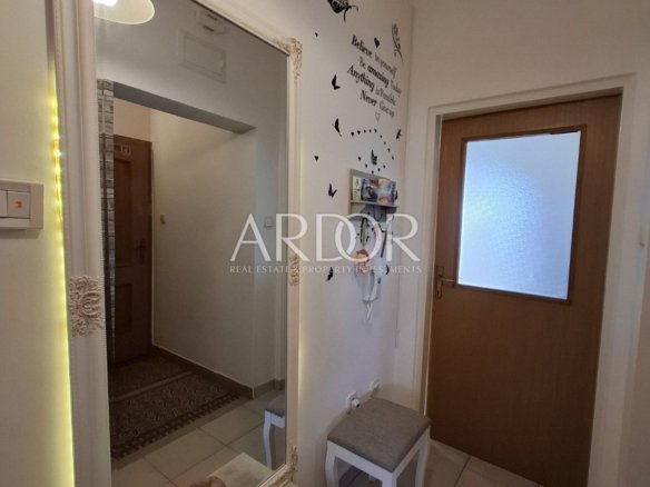 Ovaj namješteni stan sastoji se od dnevnog boravka s kuhinjom i blagovaonicom, jedne spavaće sobe, kupaonice, hodnika i balkona. U dvorištu zgrade mu pripada i parkirno mjesto.