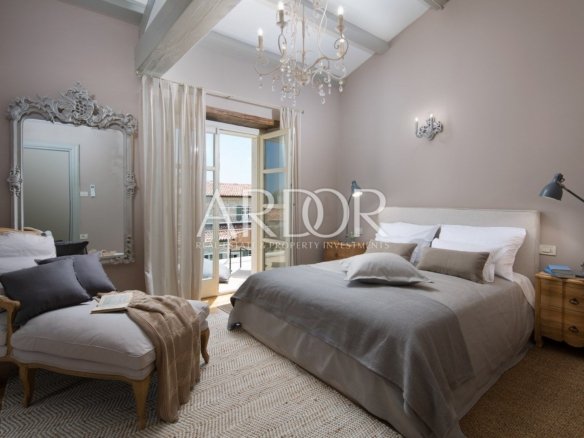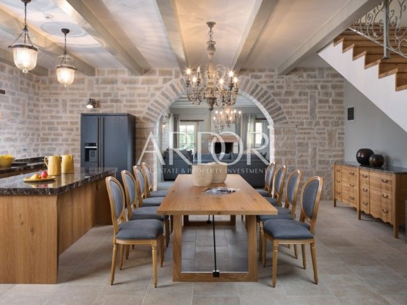 V pritličju je eleganten dnevni prostor s kaminom in izhodom na pokrito teraso s bazenom (11,6 x 4,6 m), zunanjim žarom in kopalnico. Prav tako se nahajata moderna kuhinja in jedilnica ter spalnica z lastno kopalnico in teraso. V nadstropju so tri spalnice, vsaka s svojo kopalnico, vključno z glavno spalnico s teraso.