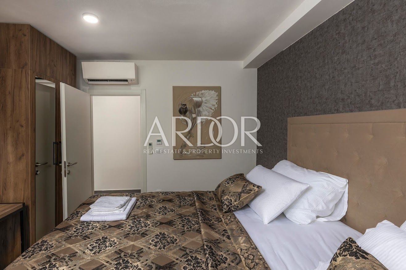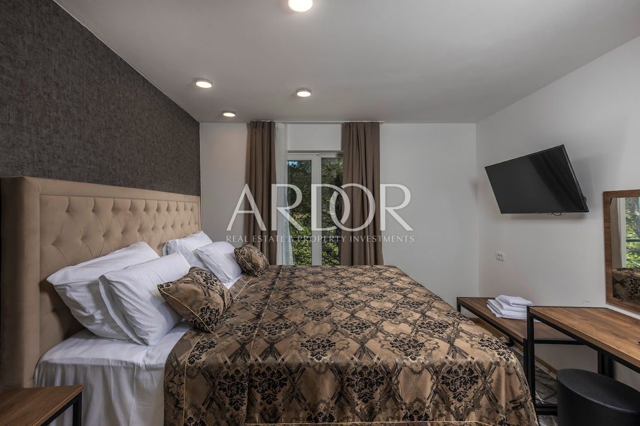 V naši ponudbi imamo novozgrajen dvojček - vilo s površino 201 m2, v neposredni bližini Mošćeničke Drage. Ta vila je del kompleksa, sestavljenega iz skupno treh vil. Hiša je v treh etažah: klet, pritličje in nadstropje. V kletnih prostorih je prostor za sprostitev in zabavo - dobro počutje ter strojnica za gospodinjske potrebe in kopalnica. Pritličje je rezervirano za dnevno sobo, kuhinjo, jedilnico in še eno kopalnico. Notranje stopnišče vodi v prvo nadstropje, kjer so tri prostorne spalnice, vsaka s svojo kopalnico. Hiša poleg notranjosti ponuja tudi lepo urejen vrt s 36 m² velikim bazenom. Zaradi ugodne lege se s terase ponuja izjemen pogled na morje in čudovit borov gozd. Pri gradnji te vile je bila vrednost postavljena na visok standard kakovosti, ki zagotavlja udobno in luksuzno bivanje. Hiša je v celoti urejena in opremljena ter opremljena s sodobnim video nadzornim sistemom. Vila ima talno ogrevanje s sistemom Daikin in klimatsko napravo v vseh prostorih. Ta nepremičnina se prodaja v celoti opremljena, tako da se lahko takoj vselite in uživate v svojem novem domu.