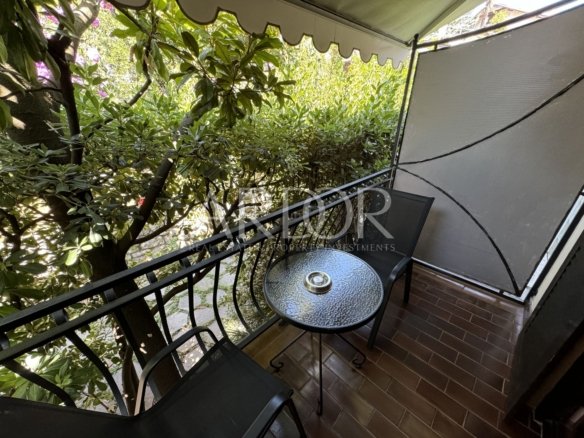 • L’appartamento al piano terra ha una superficie di 102 m² e consiste di due camere da letto, soggiorno, corridoio, due bagni, cucina e ripostiglio. Ha una terrazza parzialmente coperta e un giardino di circa 50 m².