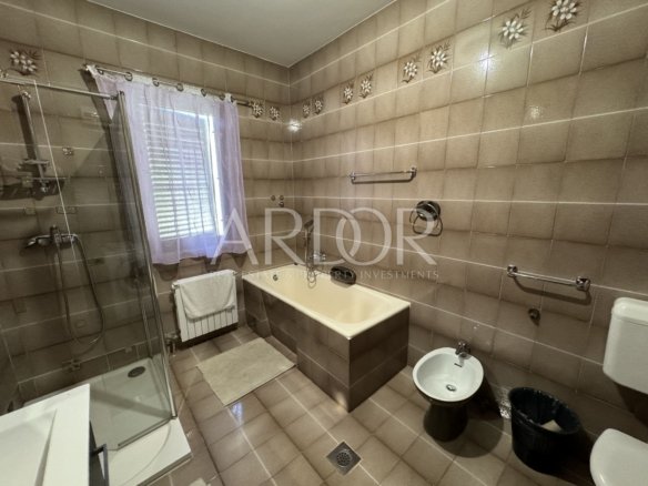 • L’appartamento al primo piano ha una superficie di 80 m² e include due camere da letto, soggiorno, corridoio, tre bagni e cucina. Questo appartamento ha tre balconi e una soffitta con una superficie totale di 89 m².