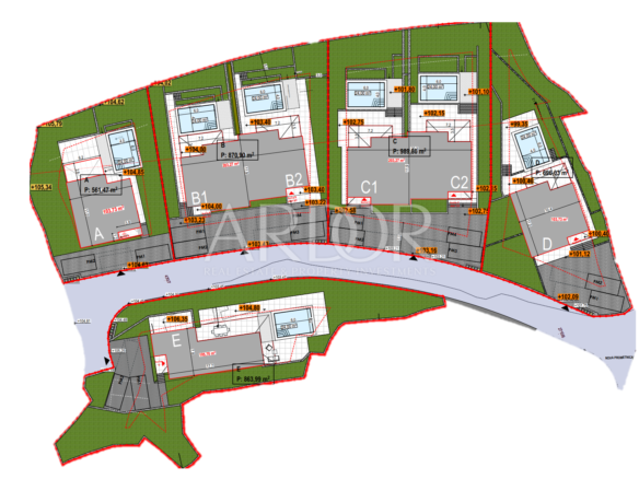 Posredujemo pri prodaji gradbenega zemljišča za projekt naselja, ki je v postopku pridobivanja gradbenega dovoljenja. Projekt je zasnovan kot naselje petih stanovanjskih enot, od katerih sta dve dvojčki, kar skupaj tvori sedem stanovanjskih enot (vil), od katerih ima vsaka svoj bazen.