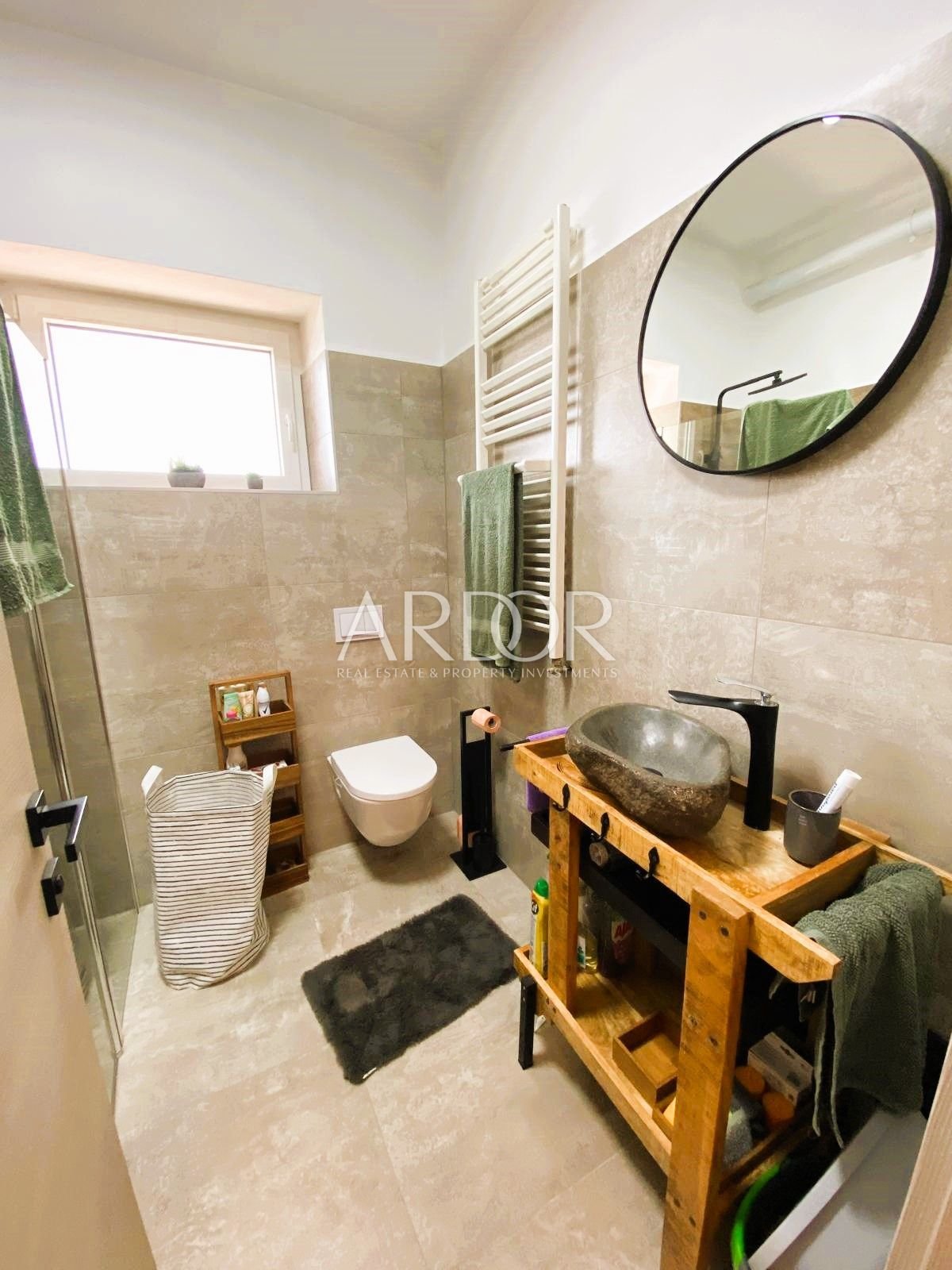 Stan je potpuno renoviran i opremljen 2021. godine, sjever-jug je orijentacije, vrlo uredan i sunčan, PVC stolarija. Grijanje etažno centralno - na gradski plin i klimu. Vrlo ukusno uređen i opremljen Siemens električnim aparatima i Smeg frižiderom iz limitirane kolekcije.