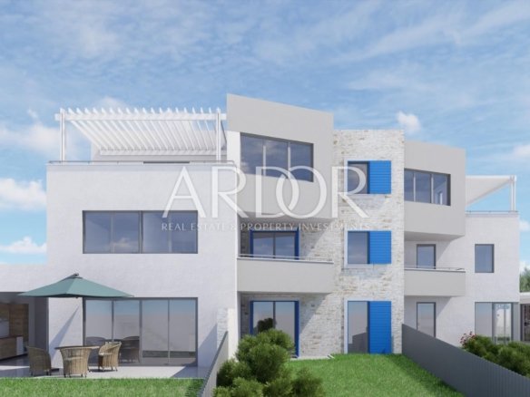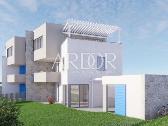Das Gebäude wird an einer leicht erhöhten Lage gebaut, was bereits im Erdgeschoss einen Meerblick ermöglicht. Die Lage ist äußerst attraktiv, nur 250 Meter vom nächsten Kiesstrand und 500 Meter vom Zentrum des Ortes mit Geschäften, Restaurants und Cafés entfernt. Das Zentrum von Novi Vinodolski ist nur 3,5 km entfernt, und der bekannte Hafen Mitan ist nur 3 Minuten mit dem Auto entfernt.