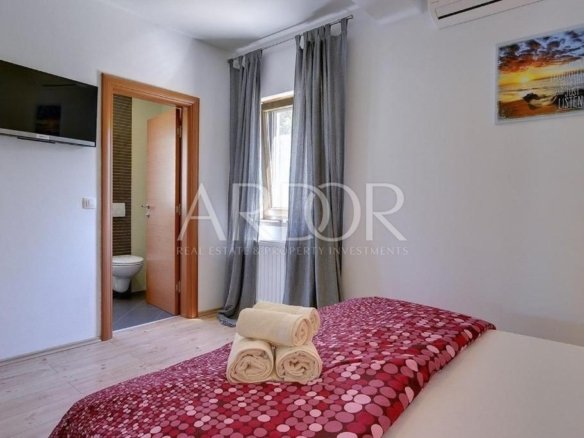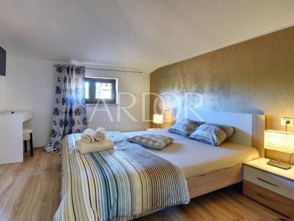 Raspolaže s četiri elegantno uređene spavaće sobe, pet moderno opremljenih kupaonica te dodatnim zasebnim toaletom. Cijeli objekt je klimatiziran, osiguravajući ugodnu temperaturu tijekom cijelog boravka.
