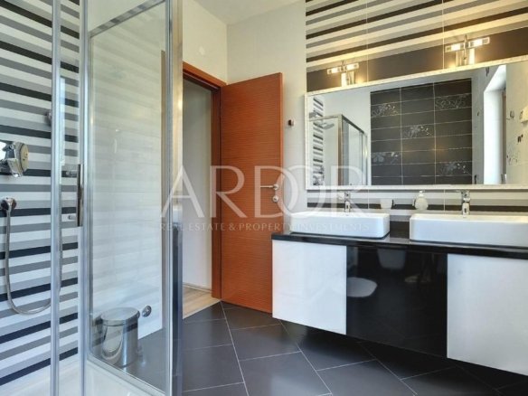 Ponaša se s štirimi elegantno opremljenimi spalnicami, petimi sodobnimi kopalnicami in dodatnim ločenim WC-jem. Celoten objekt je klimatiziran in zagotavlja prijetno temperaturo skozi ves čas bivanja.
