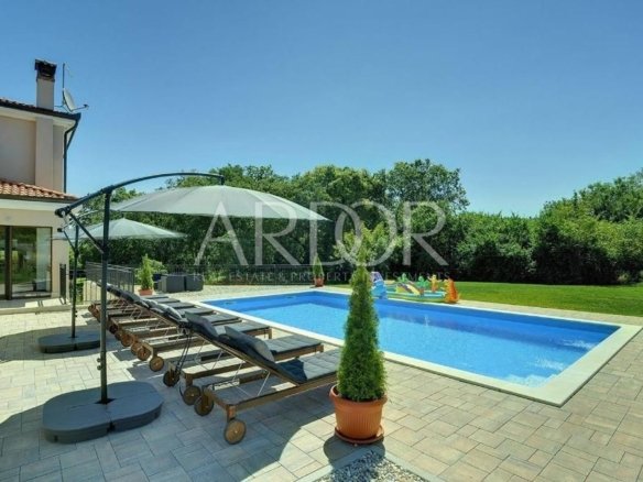 Vila se popolnoma zlije z istrskim okoljem, saj združuje rustikalne detajle z modernim dizajnom. Zunanji prostor krasi bazen velikosti 54 m², ob katerem so udobni ležalniki, idealni za sončenje. Uživajte v senci pergole ali pripravite gurmanske specialitete v zunanji kuhinji ter se družite ob obrokih na pokriti terasi.
