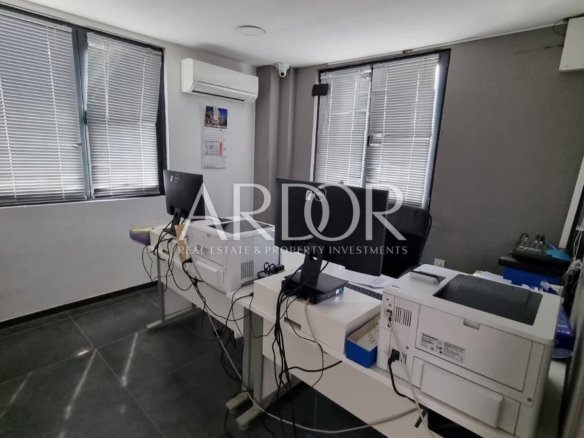 Raspolaže s dva pješačka ulaza, tri ureda te po dvije garderobe i toaleta i može se koristiti kao jedna cjelina ili kao dva zasebna poslovna prostora.