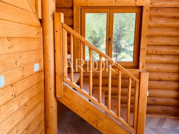Im ersten Stock, im Dachgeschoss, befinden sich eine Galerie, ein Flur, zwei Schlafzimmer und ein Badezimmer. Die Wohnfläche des Hauses beträgt 124 m².
