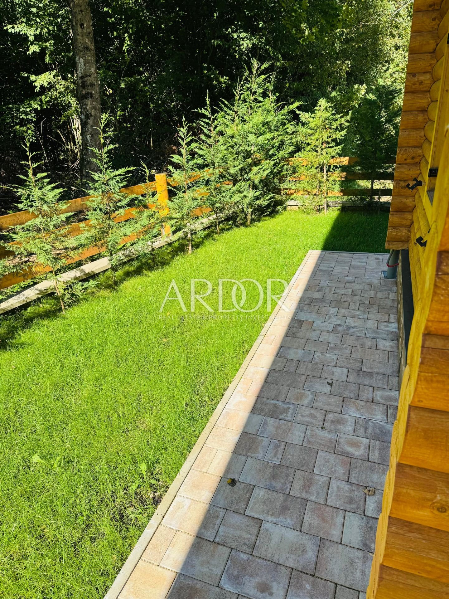 Die Fläche des Baugrundstücks/Gartens beträgt 418m2.