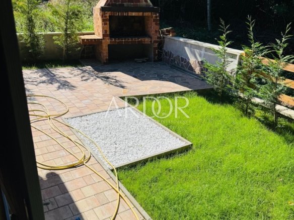 Die Fläche des Baugrundstücks/Gartens beträgt 418 m².