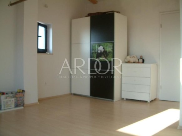 Ima balkon i natkrivenu terasu i pogled na more. Orijentacija je jug – sjever. Grijanje na drva , peleti . Vlastita drvarnica.