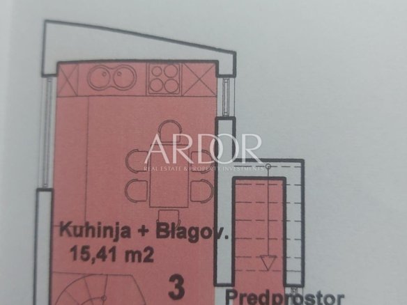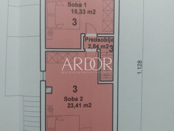 Nalazi se u blizini javnog prijevoza, trgovine, parka, igrališta, vrtića.