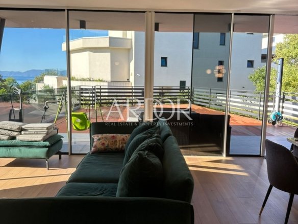 Si affitta a lungo termine un lussuoso appartamento al piano terra di un edificio moderno a Kostrena, con superficie utile di 110,08 m² e superficie lorda di 145 m².