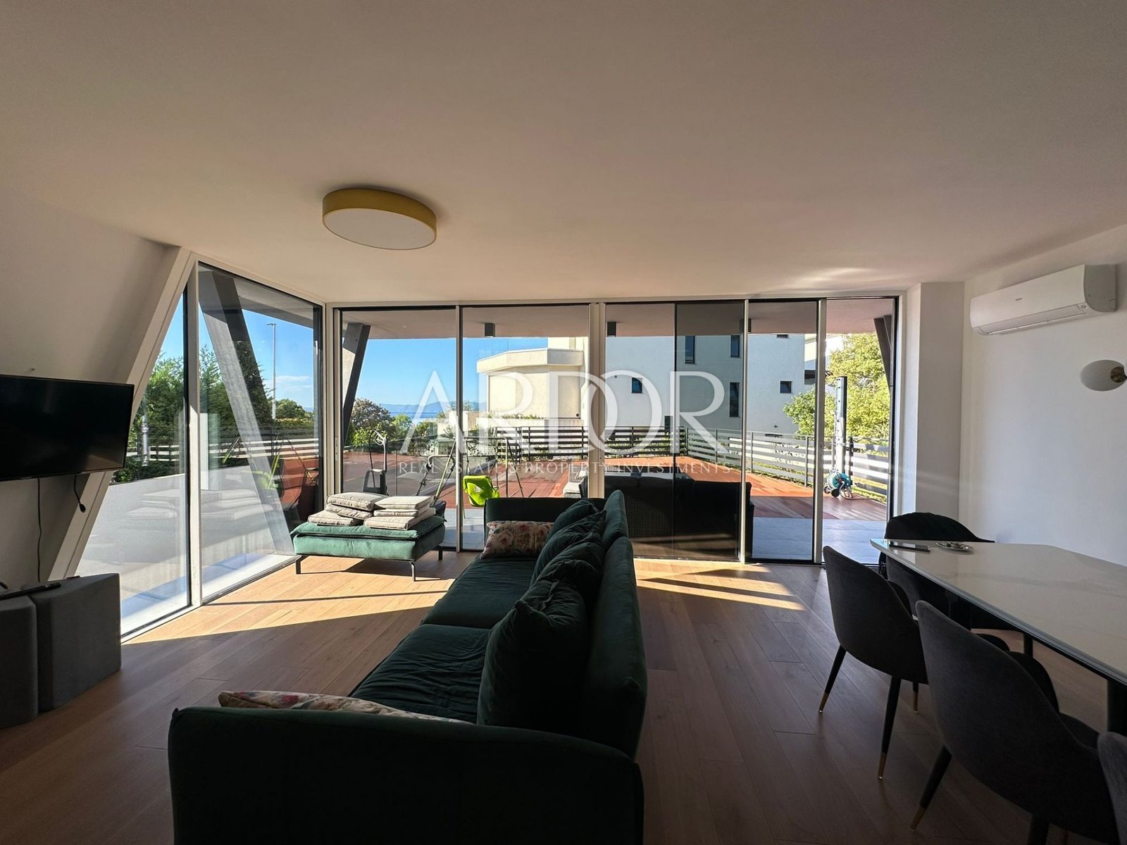 A luxury ground-floor apartment in a modern building in Kostrena is available for long-term rent. The apartment has a total usable area of 110.08 m² and a gross area of 145 m².