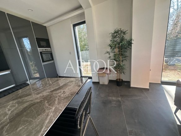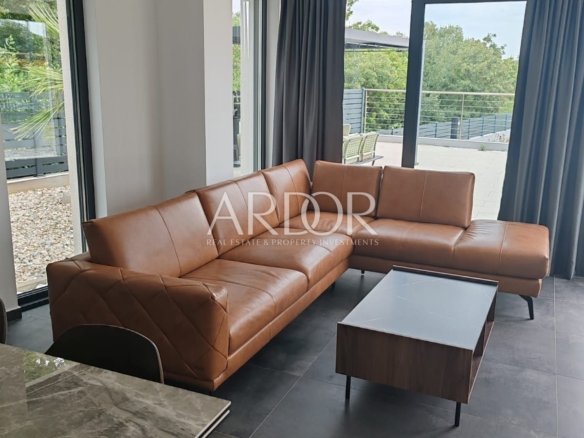 A luxurious house with a net area of 202 m² is available for rent, situated on a 1,060 m² plot. The property features a swimming pool measuring 10×4 meters and an additional auxiliary building of 40 m².