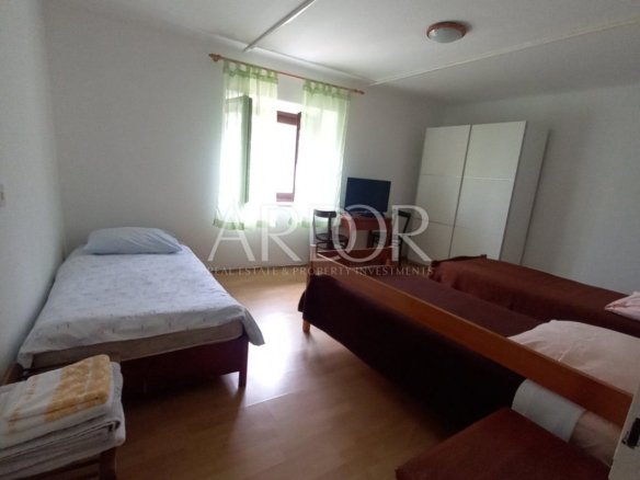 Zum Haus gehört eine eigene Garage und durch den Abriss der Straßenbegrenzungsmauer können weitere Parkplätze geschaffen werden, was für alle Kenner des alten Stadtkerns von Lošinj eine große Sache ist. Der Strand Valdarke ist nur 480 Meter entfernt und die Uferpromenade von Lošinj sowie zahlreiche Annehmlichkeiten liegen nur 600 Meter entfernt. Die Eigentümer haben einst ein Konzeptprojekt für den Umbau in 9 kleinere Wohnungen erstellt, was in dieser Lage eine sehr rentable Investition wäre. Wer an weiteren Einzelheiten zu dem Projekt interessiert ist, kann sich gerne an uns wenden.