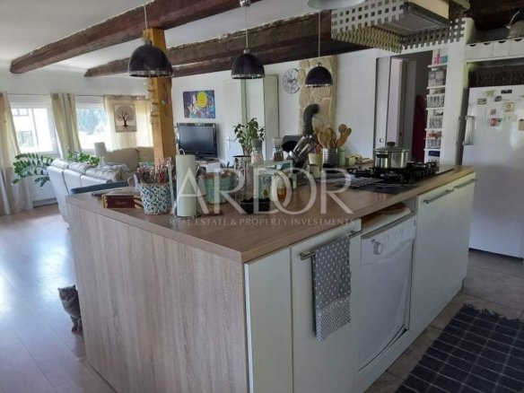 Grijanje je centralno na pelete a ima i kamin na drva. Kuća ima i podrum i garažu. Pripadajuća okućnica je 750 m2, tu se nalazi i mali voćnjak sa jabukama, trešnjama i višnjama.