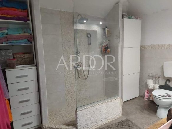 Donji stan se sastoji od dnevnog boravka, kuhinje, 2 spavaće sobe , kupaone i wc-a. Gornji stan se sastoji od open space dnevnog boravka i kuhinje, spavaće sobe i kupaone.