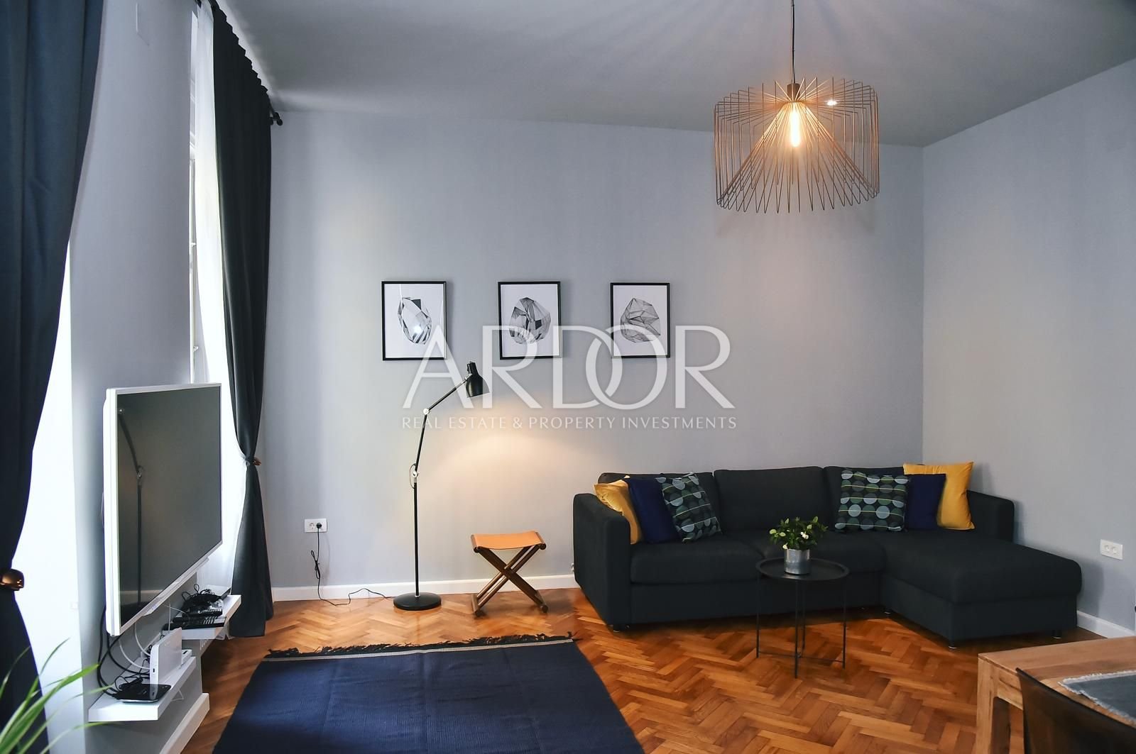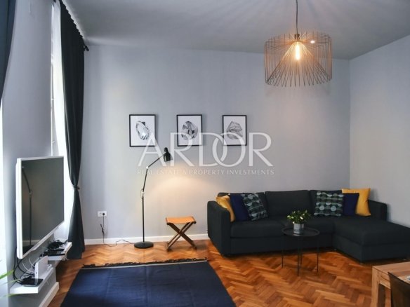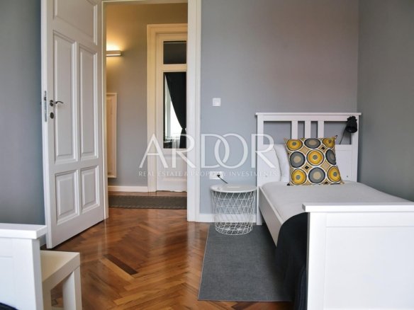 It includes a separate laundry room, two air conditioning units, and central gas heating throughout the apartment. The property is fully furnished in a modern style and equipped with a washing machine, dryer, and two TVs. Bright, spacious, and comfortable – ready for immediate long-term rental.