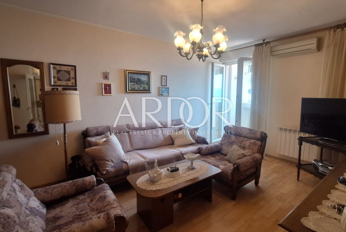 Si compone di due camere da letto, un soggiorno, una cucina con sala da pranzo, un corridoio, un bagno, un WC separato e una dispensa che offre ulteriore spazio per riporre gli oggetti. Un valore aggiunto di questo appartamento è la loggia esposta a sud, che offre una vista mozzafiato sul mare, il luogo perfetto per un caffè mattutino o per rilassarsi la sera.