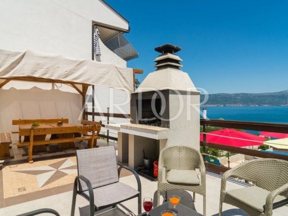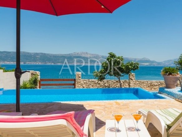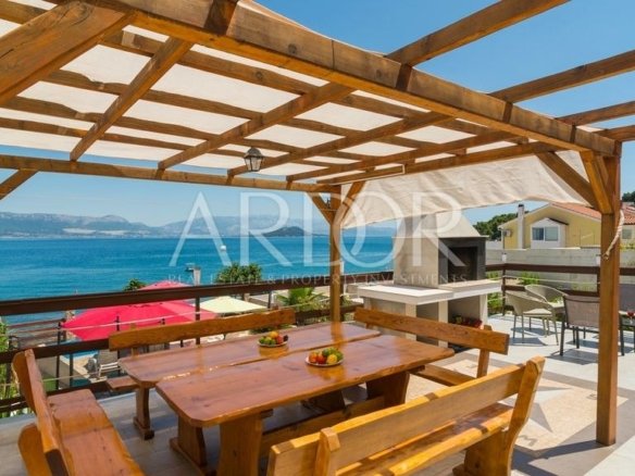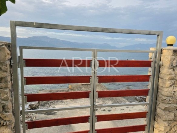 We are mediating the sale of a house in Slatine on the island of Čiovo, located in the first row by the sea, with direct access to the beach! The house, built in 1990, is located on a plot of land of almost 800 m² and is spread over three floors, with an additional low attic.