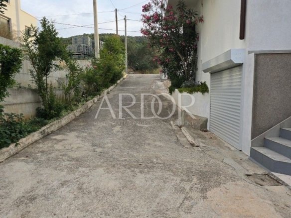 Neben der Garage für ein Fahrzeug verfügt das Anwesen über drei Parkplätze entlang der Straße und weitere vier im Hof. Die Nähe aller wichtigen Annehmlichkeiten, der Autobahn, des Flughafens und größerer dalmatinischer Städte macht dieses Haus ideal für die touristische Vermietung, aber auch für das Familienleben am Meer.