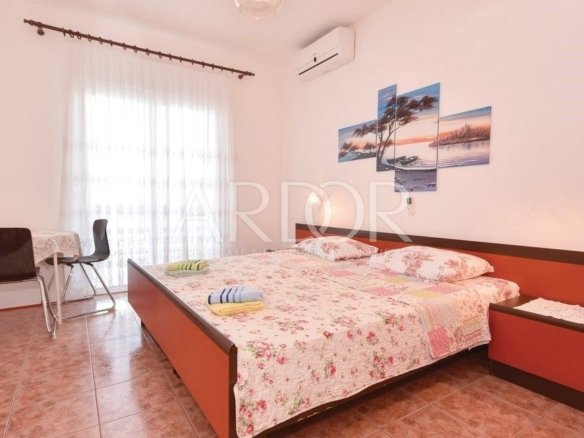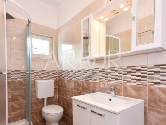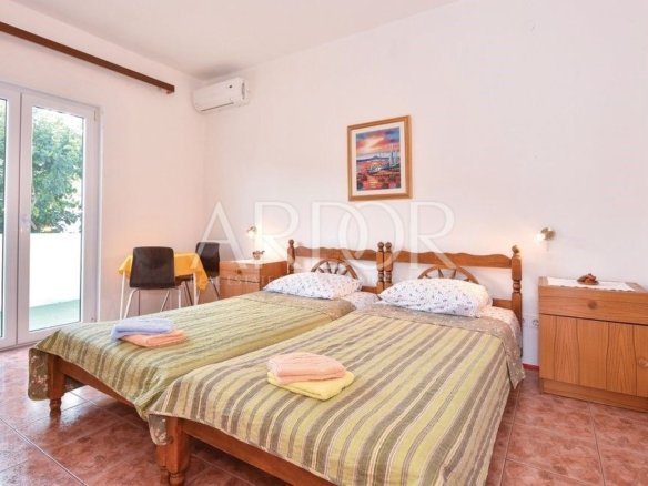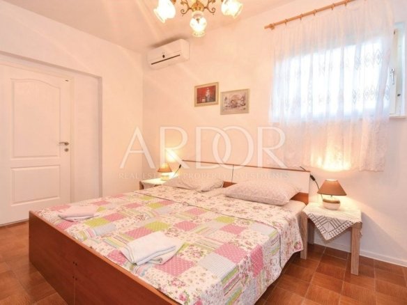 Oltre al garage per un veicolo, la proprietà dispone di tre posti auto lungo la strada e altri quattro nel cortile. La vicinanza di tutti i servizi importanti, dell’autostrada, dell’aeroporto e delle più grandi città dalmate rende questa casa perfetta per l’affitto turistico, ma anche per la vita familiare al mare.