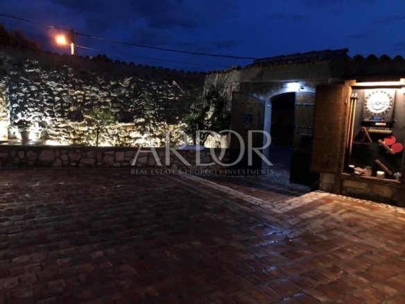 ČUDOVITA LJETNA KUHINJA Z VELIKIM ŽAROM IN POKRITEM TERASO, BAZENOM IN POČIVALIŠČEM SE NALAŽI NA POPOLNOMA UREJENEM VRTU. KONOBA JE PRAV ZA VEČJA DRUŽENJA, SPREDAJ JE MIZA ZA BILJAR IN PIKADO.