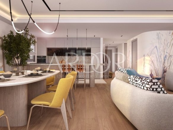 The apartments are equipped with heating and cooling systems with Daikin heat pumps, a fan coil system, all have underfloor heating, three-layer aluminum joinery with glass walls up to 7.5m wide. There are first-class parquet floors on the floors, and the bathrooms are equipped with top-quality Italian ceramics.