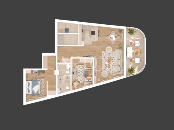 As soon as you enter the building, you will be charmed by the modern design and carefully selected materials that provide a feeling of elegance and luxury. Each apartment is oriented south-north, from the south side there is a balcony, while the side apartments are oriented on three sides, with larger open terraces.