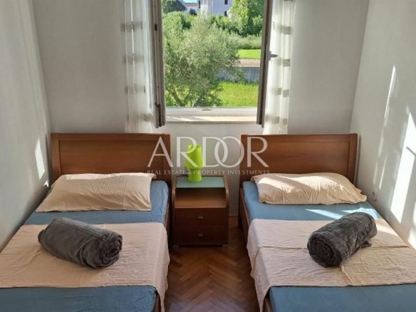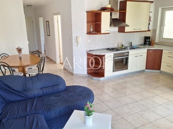 Dodatne pogodnosti uključuju vlastito parkirno mjesto i vanjski roštilj u dvorištu, idealan za uživanje u sunčanim danima. Smješten u zgradi s kanalizacijom i zapadnom orijentacijom, ovaj apartman pruža svu potrebnu udobnost i privatnost.