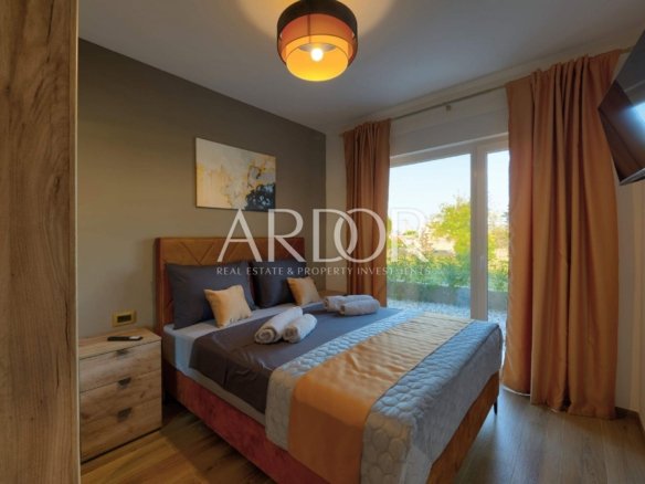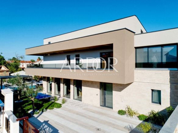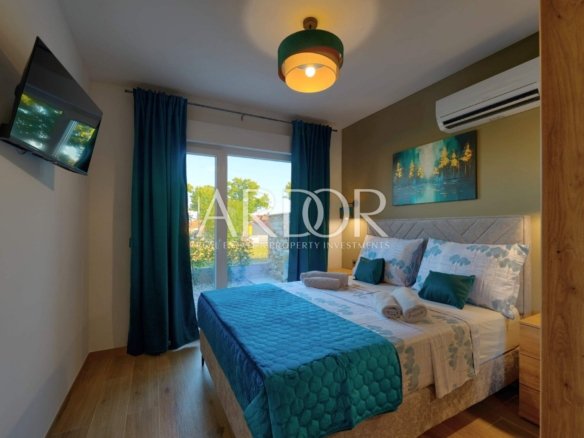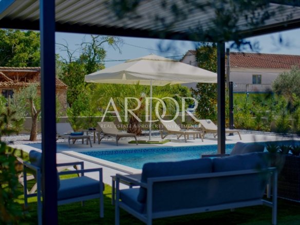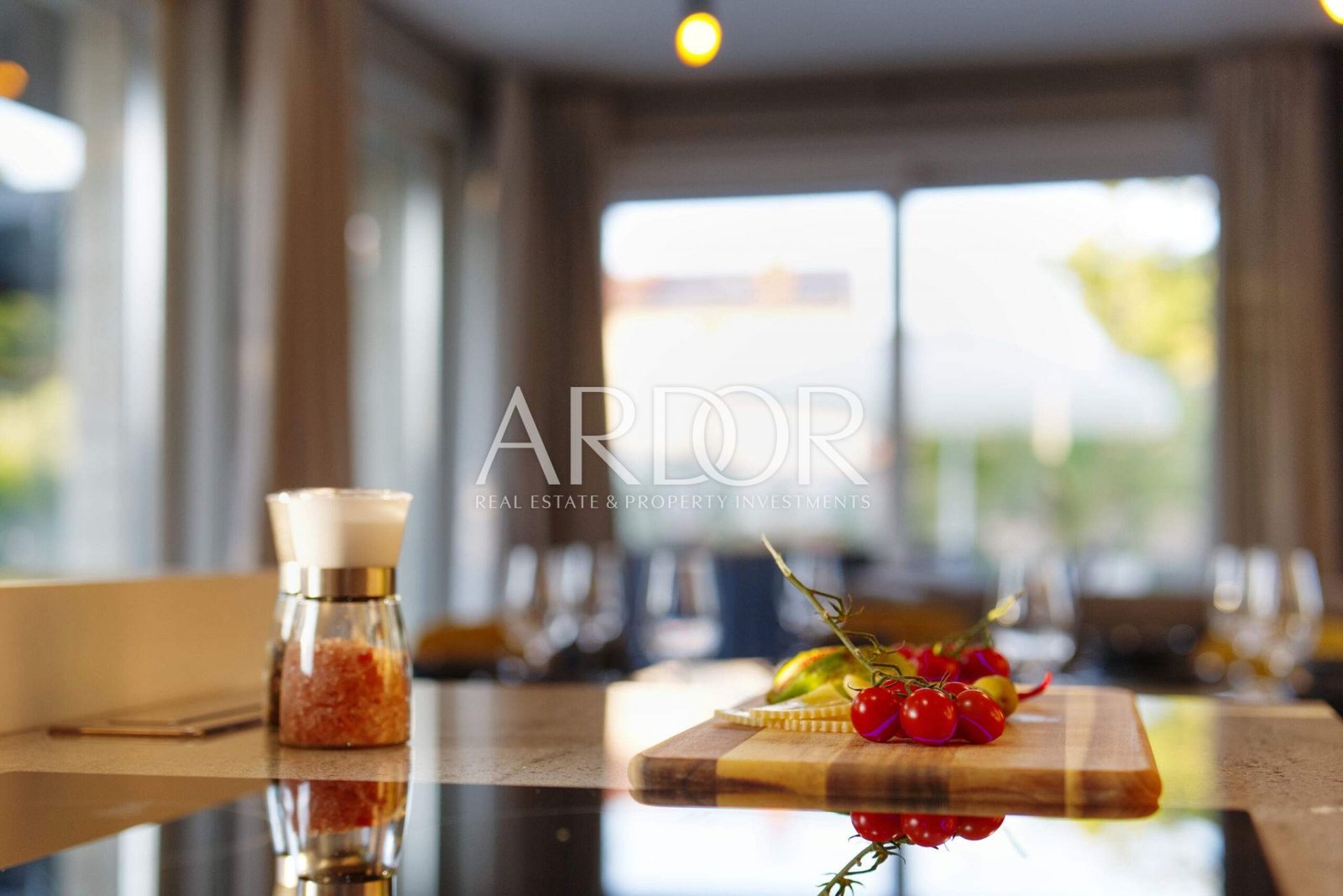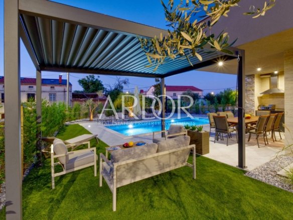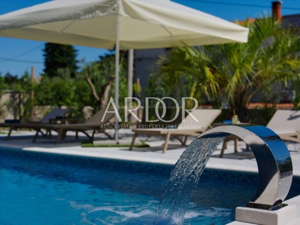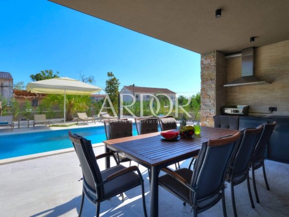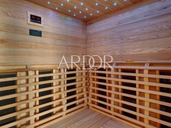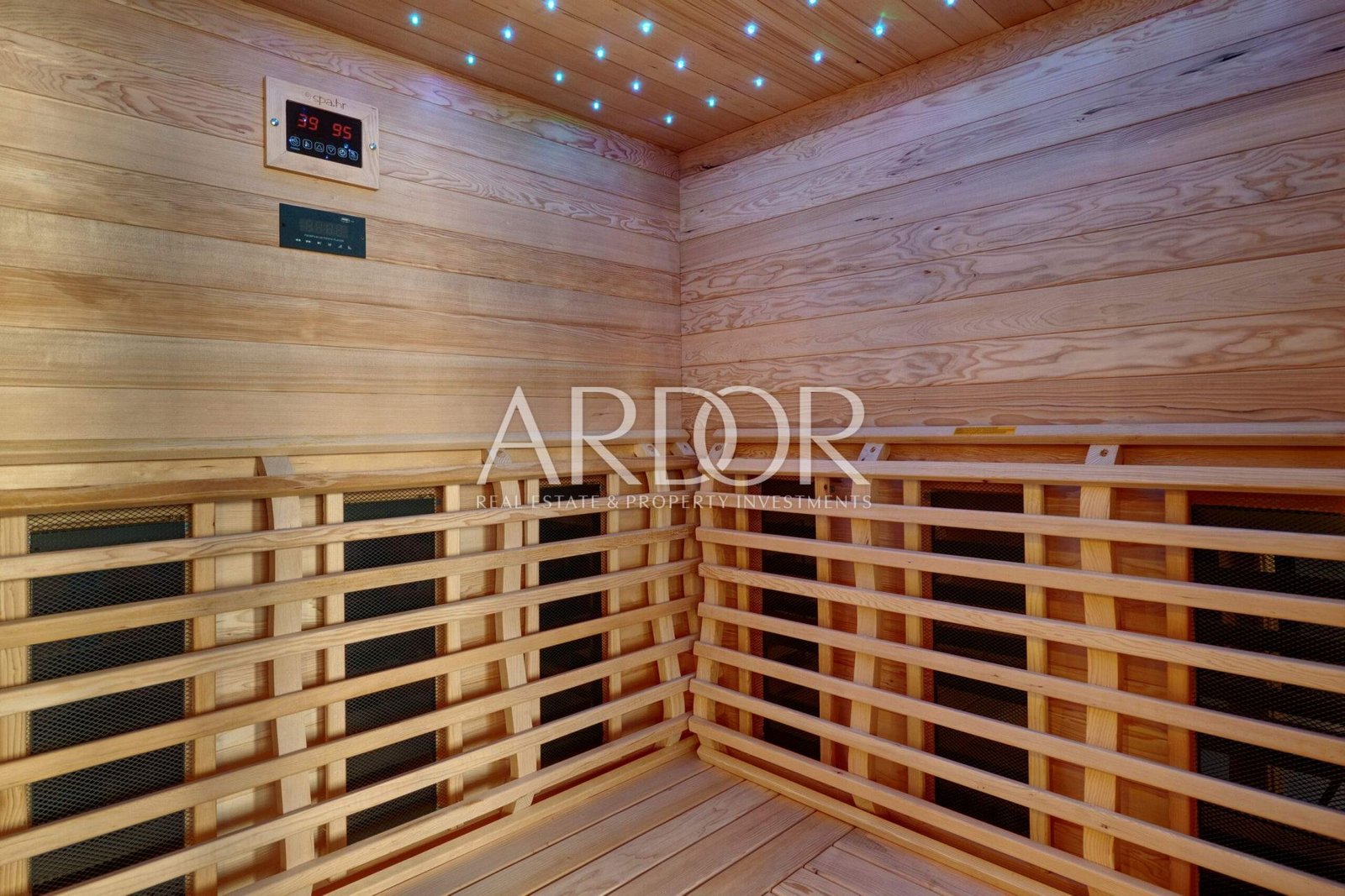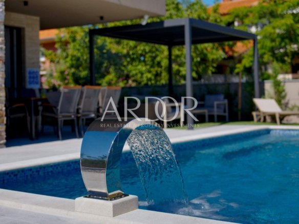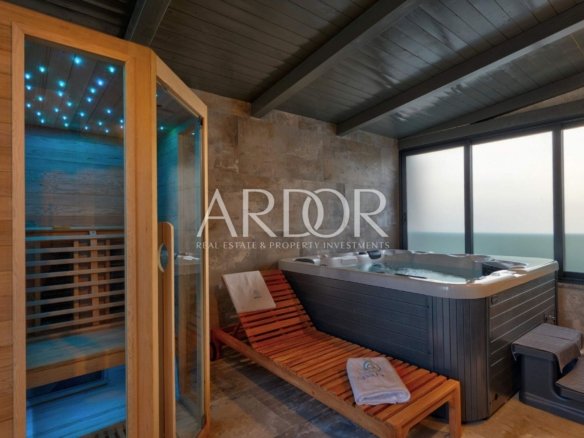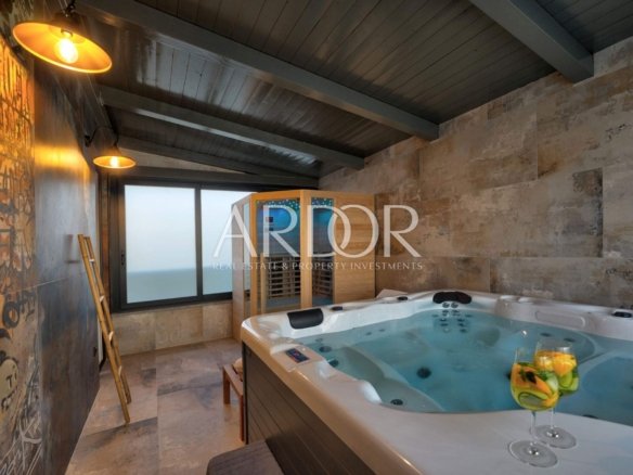 Uređeni vanjski prostor dodatno naglašava doživljaj luksuza. Bazen s jacuzzijem, prostrana terasa i opremljena ljetna kuhinja pozivaju na uživanje u dugim sunčanim danima i večernjim druženjima na otvorenom. Za potpuni komfor, osmišljen je i prostor namijenjen djeci, što ovu vilu čini izvrsnim izborom za obiteljski odmor i život.