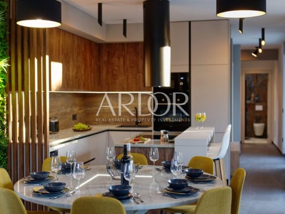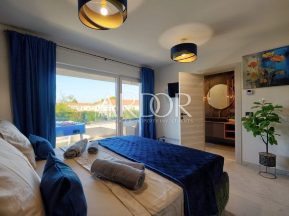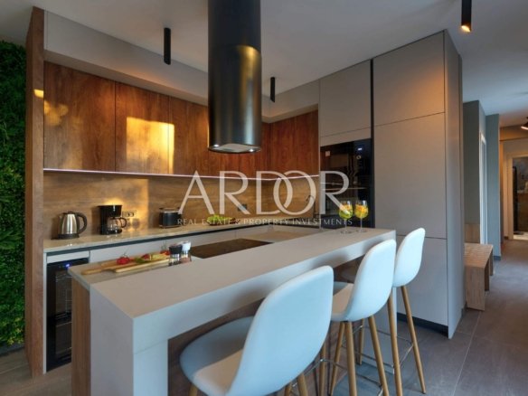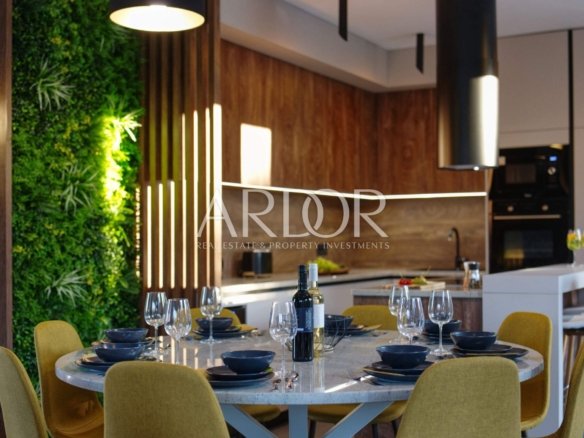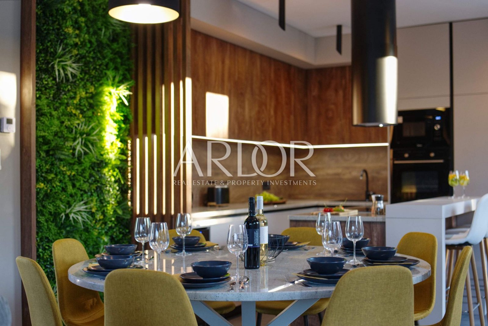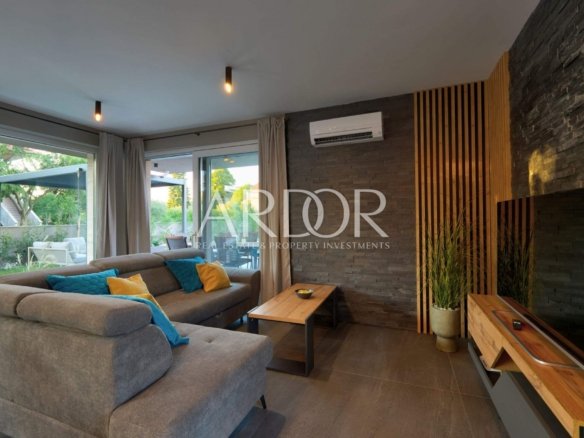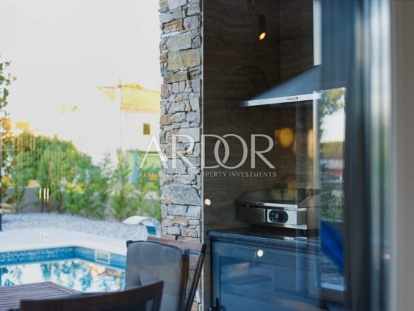 The landscaped outdoor area further emphasizes the experience of luxury. A swimming pool with a jacuzzi, a spacious terrace and a fully equipped summer kitchen invite you to enjoy long sunny days and evening gatherings outdoors. For complete comfort, a space designed for children has also been designed, making this villa an excellent choice for family vacations and living.