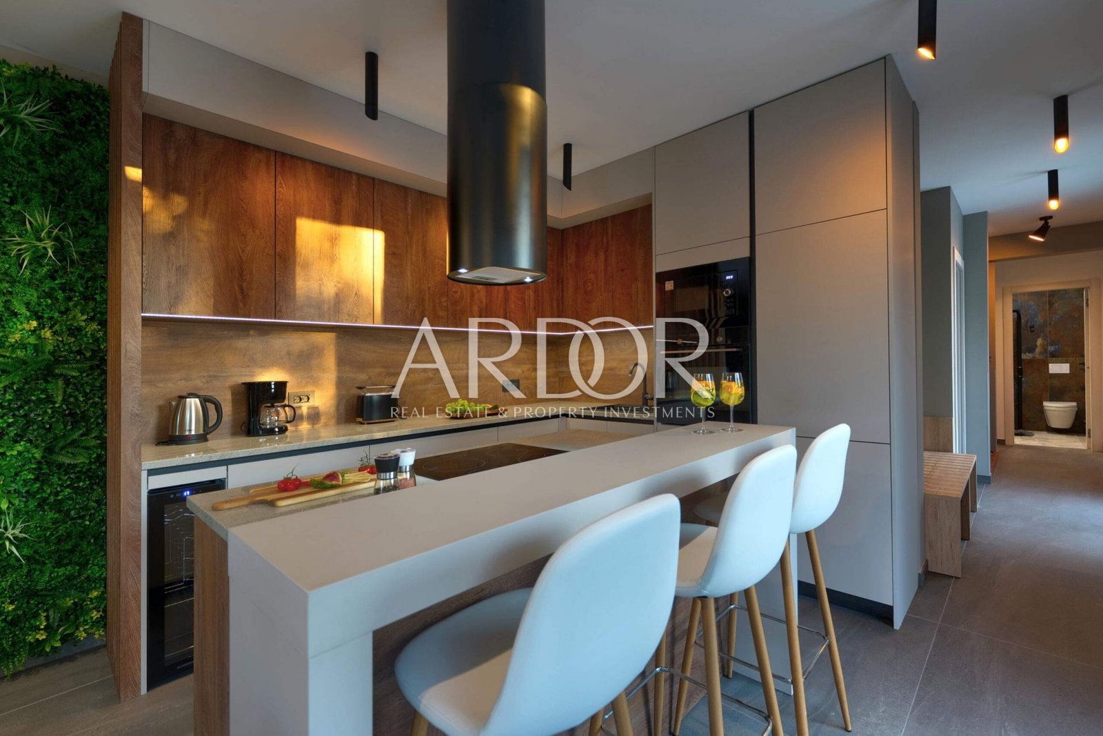 The interior of the house exudes modern luxury and the warmth of home. The central part is made up of a spacious living room connected to an elegantly decorated kitchen and dining room, a perfect space for socializing or relaxing. The villa has four comfortable bedrooms, each with its own top-quality equipped bathroom, which allows complete privacy and comfort for all household members and guests. Design details and carefully selected materials create an impression of sophistication and timeless style.