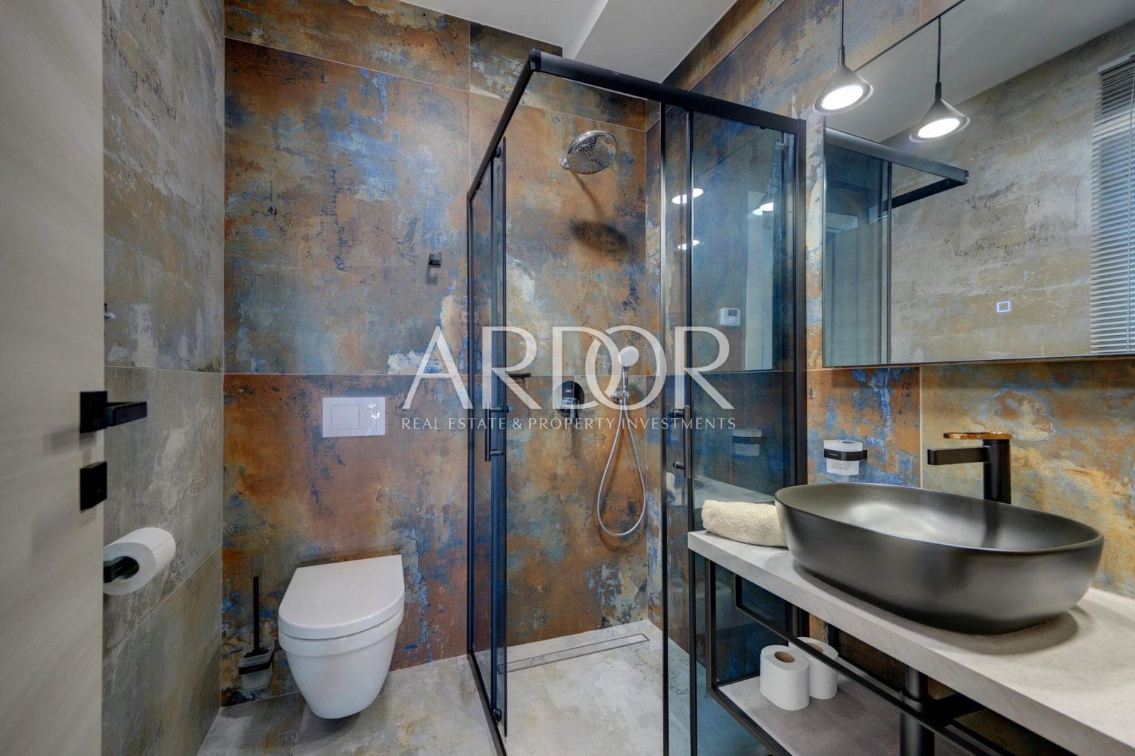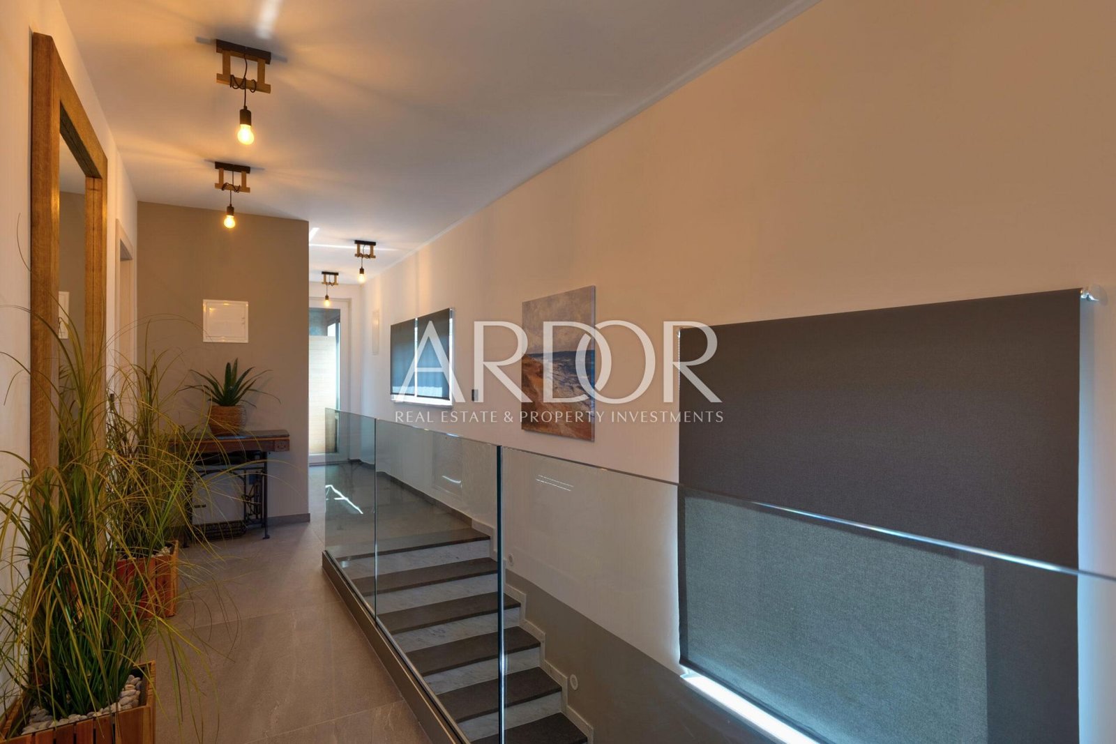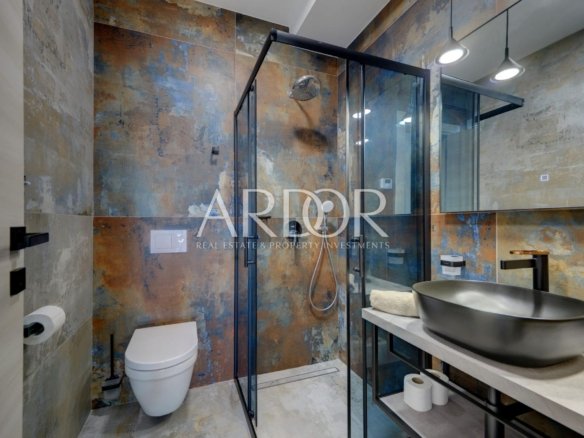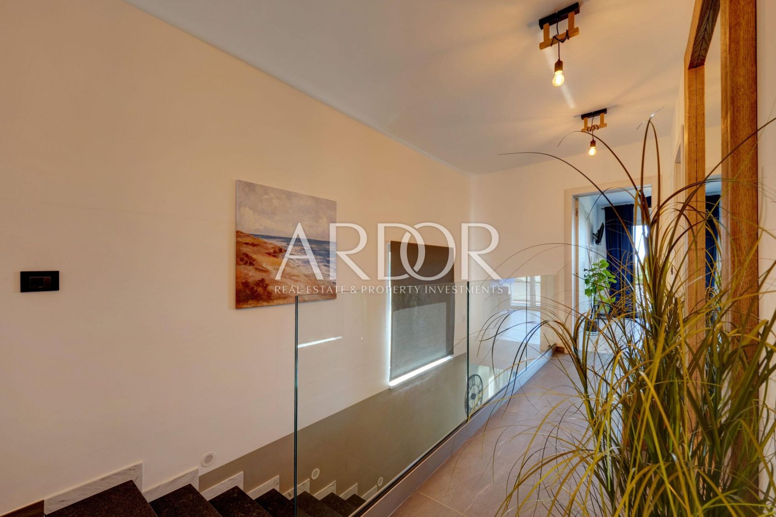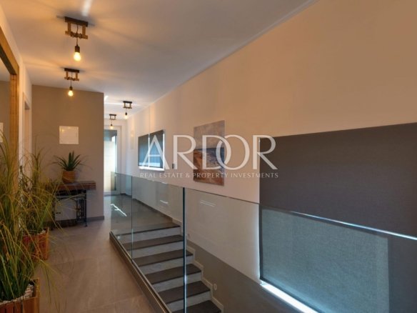 Notranjost vile izžareva prefinjenost – odprt dnevni prostor z moderno zasnovano kuhinjo in jedilnico tvori središče hiše, idealno za družinska srečanja in sprostitev. Štiri prostorne spalnice, vsaka s svojo luksuzno opremljeno kopalnico, zagotavljajo maksimalno zasebnost in udobje, skrbno izbrani detajli pa poudarjajo sodoben slog in občutek ekskluzivnosti.