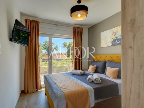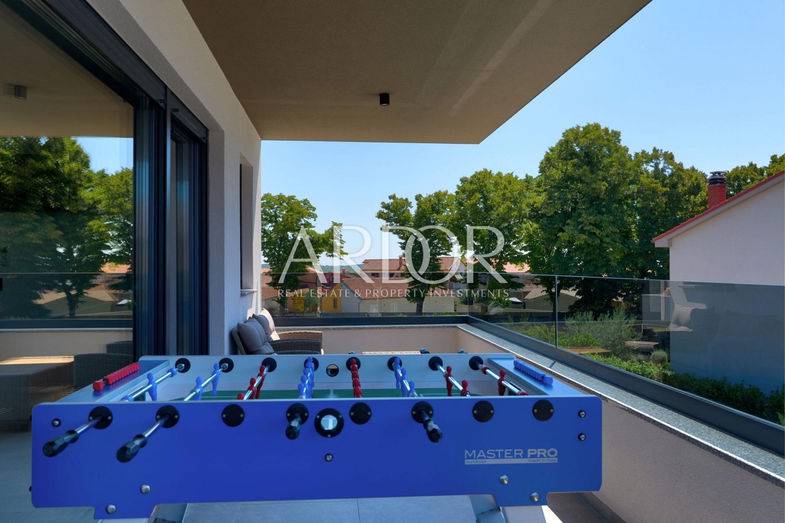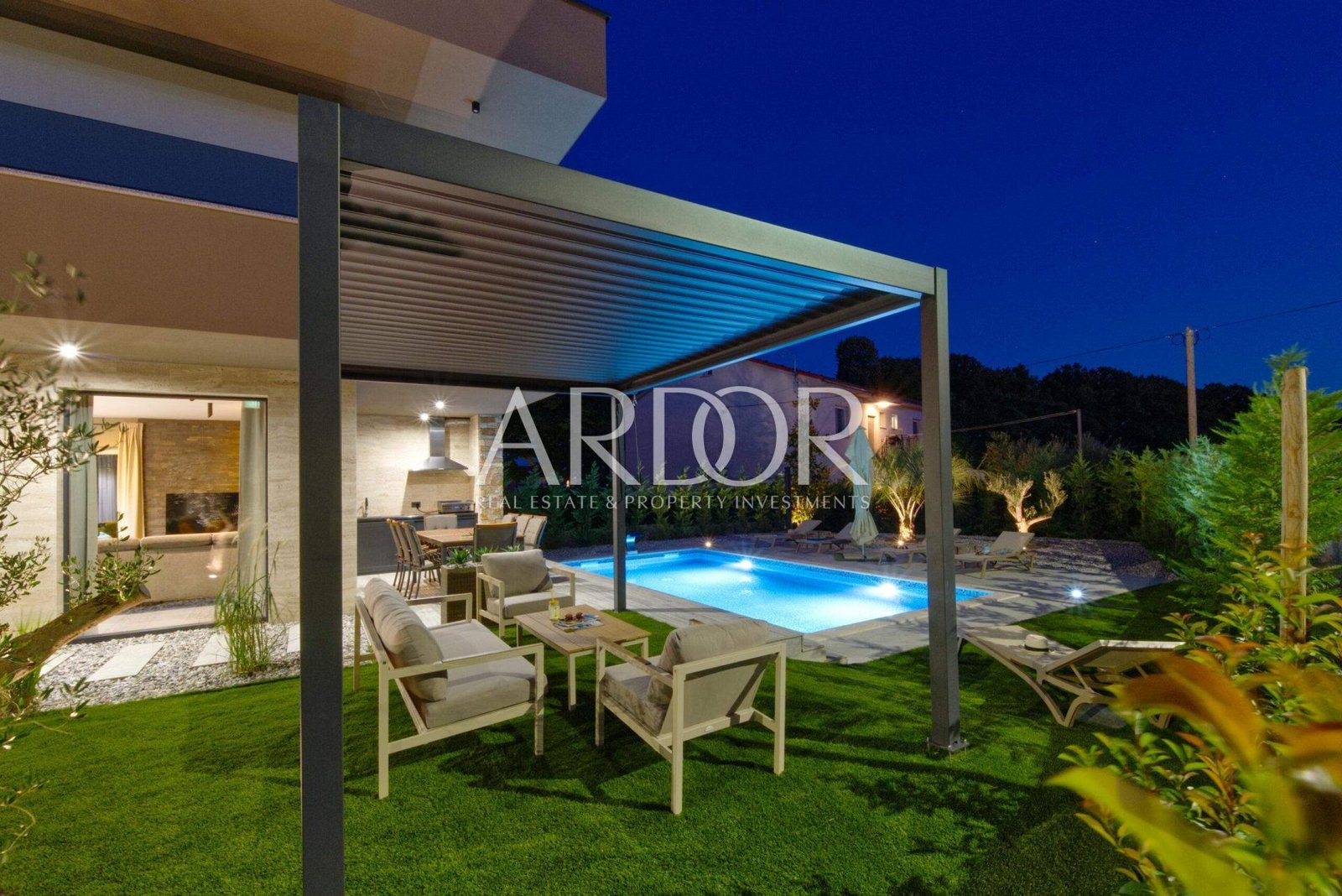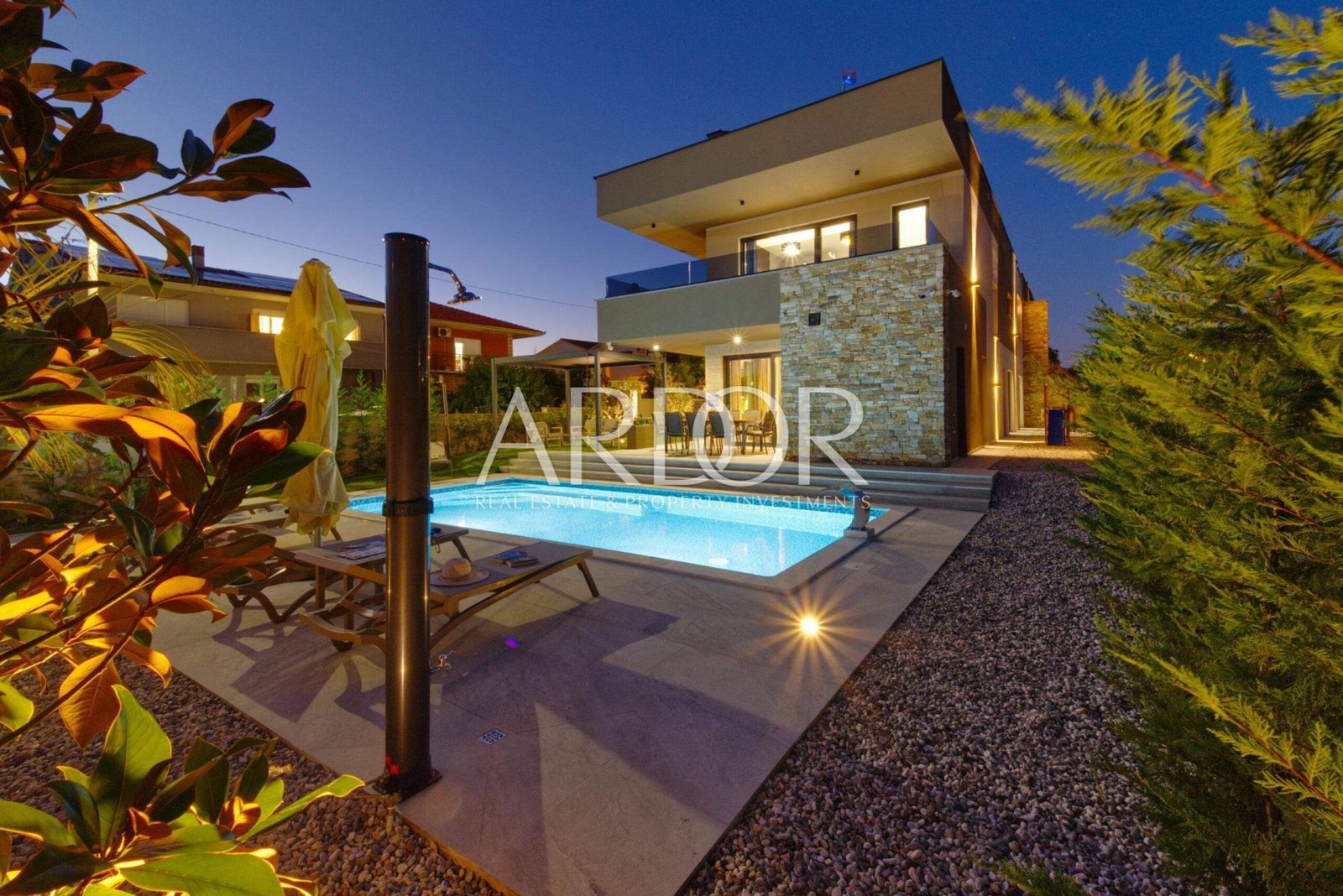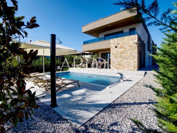 Vanjski prostor jednako je dojmljiv – uređeni vrt s bazenom i jacuzzijem poziva na uživanje u suncu i potpunom opuštanju. Prostrana terasa i vanjska kuhinja stvorene su za nezaboravna druženja na otvorenom, dok posebno osmišljen kutak za djecu čini ovu vilu savršenim izborom za obitelji.