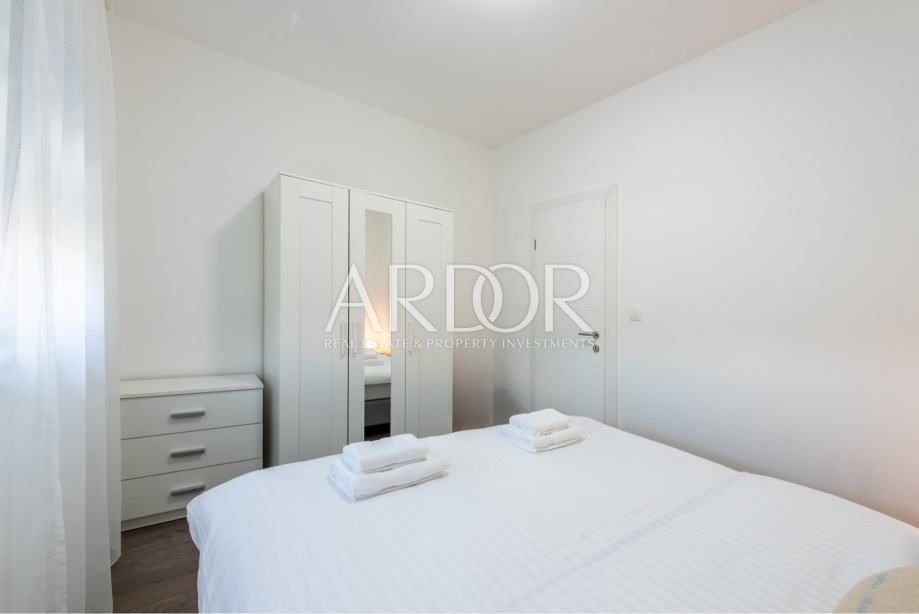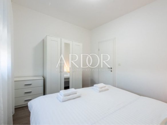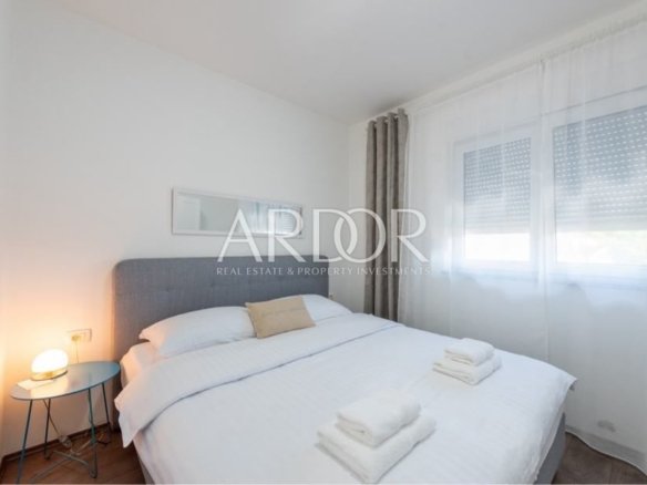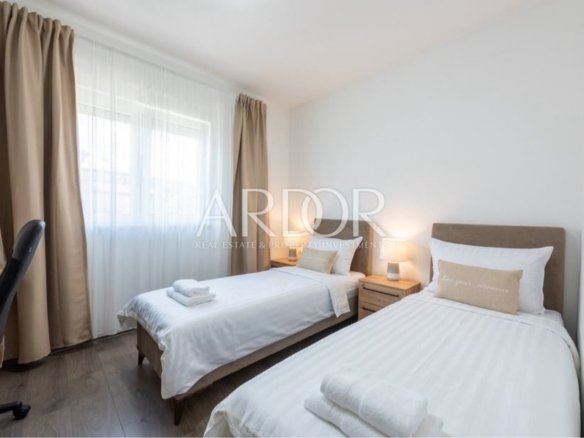 Poleg vrhunskega udobja stanovanje ponuja tudi tri kopalnice, električne rolete, klimatsko napravo in lastno ograjeno dvorišče, opremljeno s kamnitim žarom, ki je idealno za druženje in uživanje na prostem. Posebna vrednost sta dve zasebni parkirni mesti, kar je v tem delu Matuljev redkost.