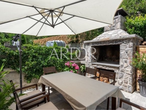 Oltre al comfort di alto livello, l'appartamento offre anche tre bagni, tapparelle elettriche, aria condizionata e un giardino privato recintato con barbecue in pietra, perfetto per socializzare e godersi l'aria aperta. Di particolare pregio sono i due posti auto privati, una rarità in questa zona di Matulji.