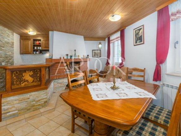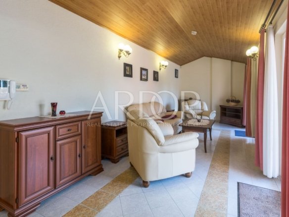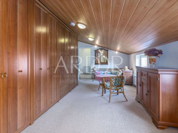 Udobnost i elegancija ove nekretnine čine ju velebnom te je razlikuju od ostale ponude na tržištu. Osim zbog njezine ljepote preporučamo je i zbo prekrasno uređene prostrane okućnice na kojoj možete uživati u toplim ljetnim večerima uz objed ili na bazenu, ili zimi, u zimskom vrtu s pogledom na more i prekrasni Istarski krajolik.