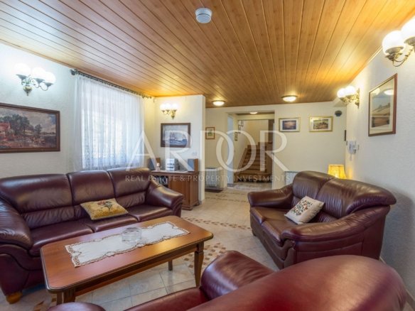 Ova nekretnina je rijetkost na tržištu zbog više razloga: lokacija koja omogućava spajanje praktičnosti i komoditeta – izuzetno mirna i tiha a opet u blizini mora, plaža te gradskih sadržaja, prostrana okućnica te površina stambenog prostora koja sadržava dvije stambene jedinice te još jedne male u suterenu te panoramski pogled na more. Vrijedno pažnje je činjenica da sadržava vinski podrum podijeljen na dvije prostorije, što će budućim vlasnicima dati dodatnu vrijednost te mogućnost uživanja u blagodatima istarskog podneblja.