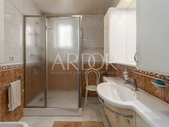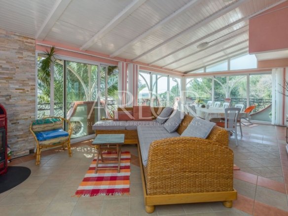 Das hohe Erdgeschoss führt uns in das Wohnzimmer und die Küche mit Esszimmer, von der aus man Zugang zu einer großzügigen Terrasse hat – einem Wintergarten, in dem Sie im Sommer wie im Winter den Panoramablick auf das Meer genießen können. Im Erdgeschoss befinden sich zwei Schlafzimmer, ein Badezimmer mit Toilette, eine separate Gästetoilette und ein Abstellraum.