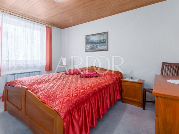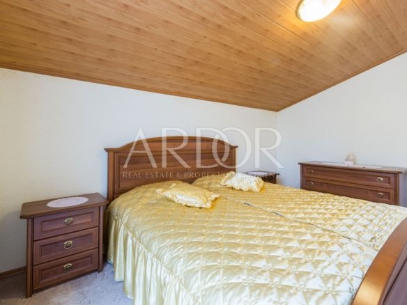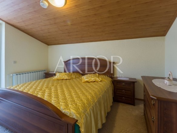 On the second floor there is another living room, three bedrooms and a bathroom with toilet. Two bedrooms have access to the terrace, which offers an even more beautiful view of the sea and Istrian natural beauty. The villa is heated with gas and has its own boiler room in the basement as well as a storage room for garden tools. It is equipped with a burglar and fire alarm, cameras that cover the garden area, a forged fence around the entire building and 3 parking spaces on the lot.