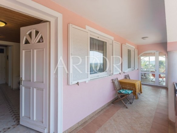 Visoko prizemlje vodi nas u dnevni boravak te kuhinju s blagovaonom iz kojih se izlazi na prostranu terasu – zimski vrt u kojem možete uživati ljeti i zimi u panoramskom pogledu na more. Prizemlje sadržava dvije spavaće sobe, kupaonicu s WC-om, poseban wc za goste te ostavu.