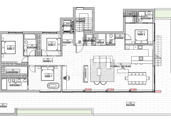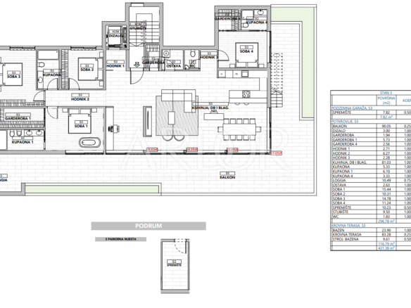 The apartment also has three garage spaces of 15 m2. Each apartment will be equipped with a modern cooling system, quality ceramics, lighting and carpentry. Recommendation of agents!