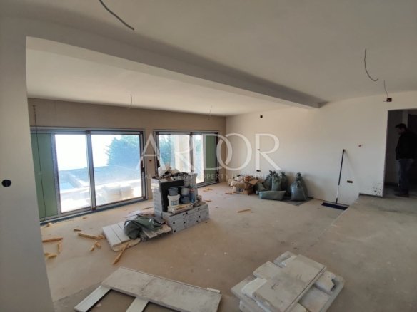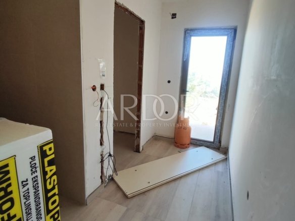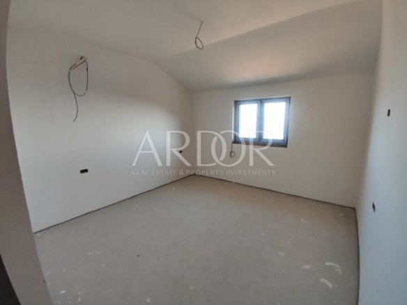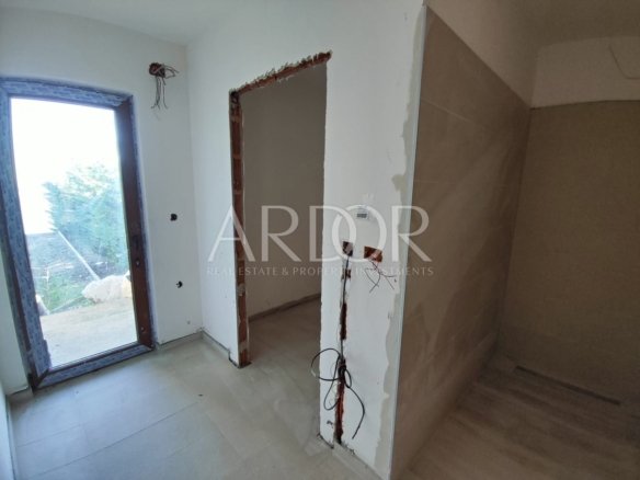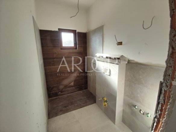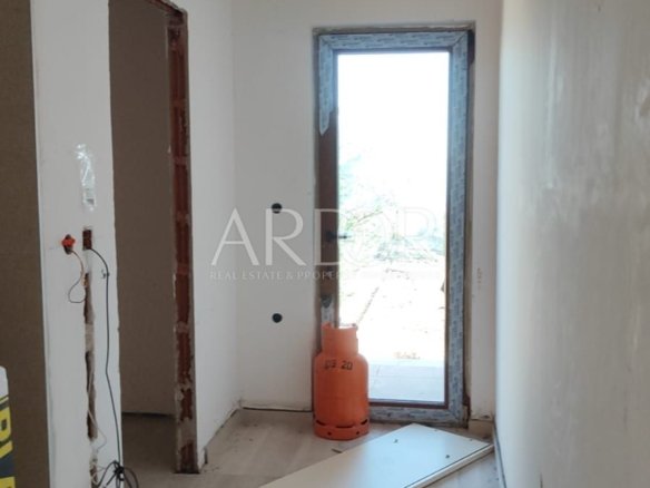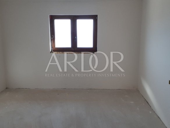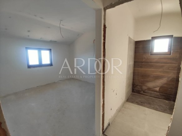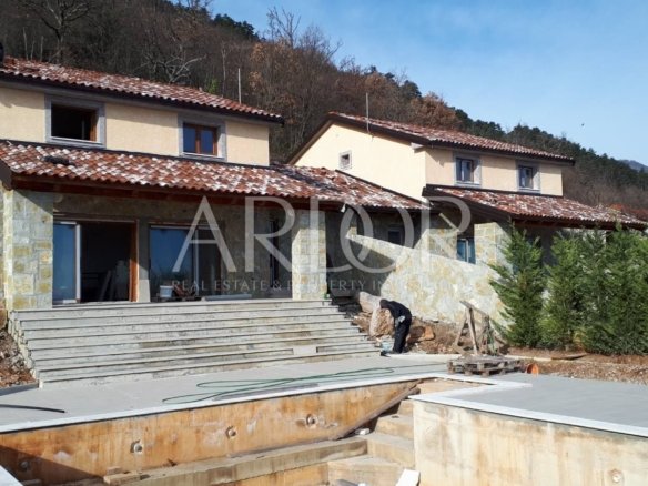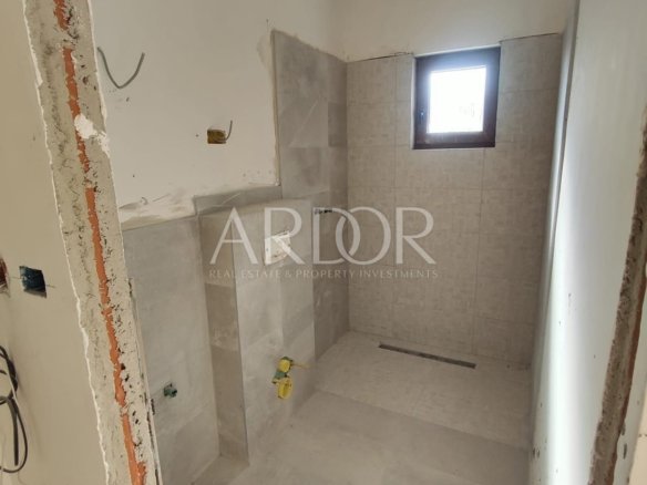 Obje kuće su izgrađene do visoke faze, s vanjskom stolarijom, fasadom, krovom te postavljenim pločicama u kupaonicama. Ostale prostorije su pripremljene za postavljanje podnih obloga. Trenutno stanje nekretnine može se vidjeti na priloženim slikama.