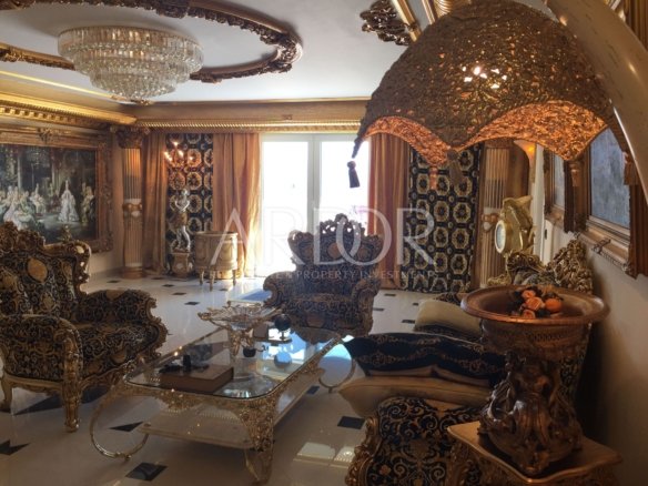 Es besteht aus 12 Schlafzimmern, jedes in seinem eigenen Stil eingerichtet, 10 Badezimmern, 2 Toiletten, vier Wohnzimmern, zwei Lounges, internem Aufzug, Fitness-Center von über 80 m2, Swimmingpool 10×5 Meter. Wasserhähne und Ornamente aus reinem Gold. Die hochwertigsten Systeme, die Kühlung und Heizung, elektrische Leitungen, die Korrektheit des Wassers im Pool überwachen…