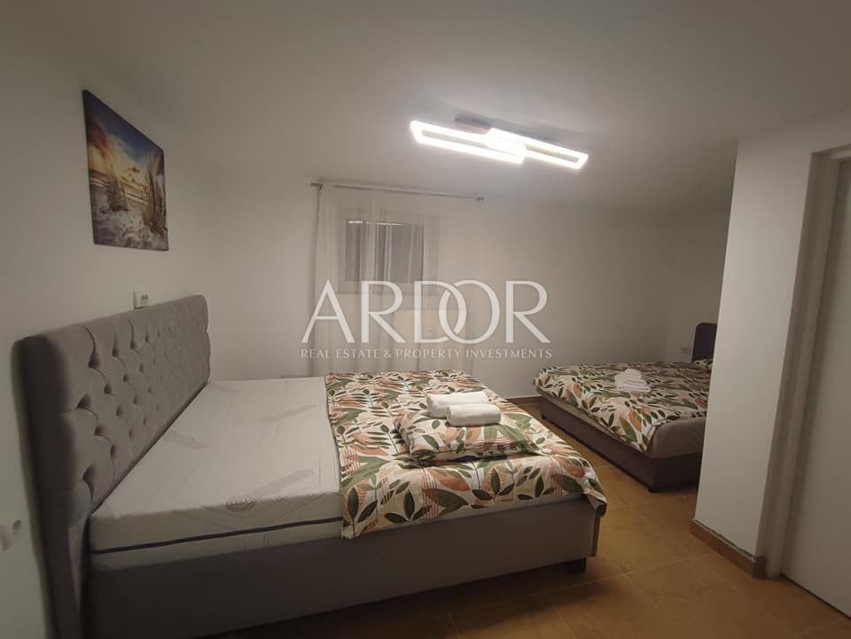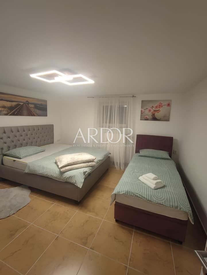 Kapaciteta apartmaja je pet oseb, po potrebi je možno ločiti zakonsko posteljo za več oseb.