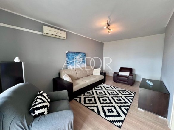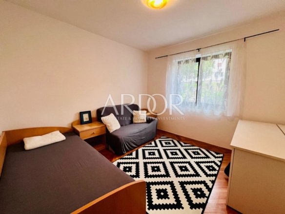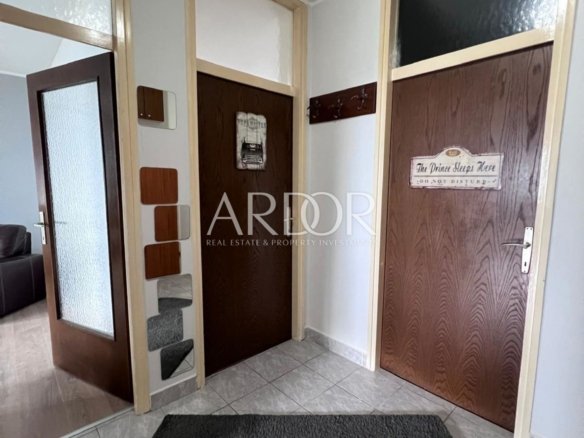 Stan se sastoji od prostranog dnevnog boravka, kuhinje s blagovaonom, kupaonice, odvojenog WC-a, dvije spavaće sobe te dva hodnika s ugradbenim ormarima. Grijanje je putem klima uređaja, a stan ima novu aluminijsku stolariju. Uz stan dolazi i komotna drvarnica u sklopu zgrade.