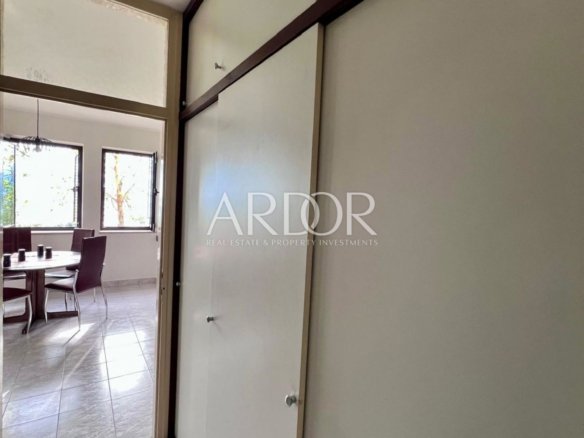 Zgrada je okružena zelenilom, a u neposrednoj blizini nalazi se mnogo besplatnih parkirnih mjesta. Zgrada je dvokatnica, a stan se nalazi na visokom prizemlju, što pruža dodatnu udobnost.